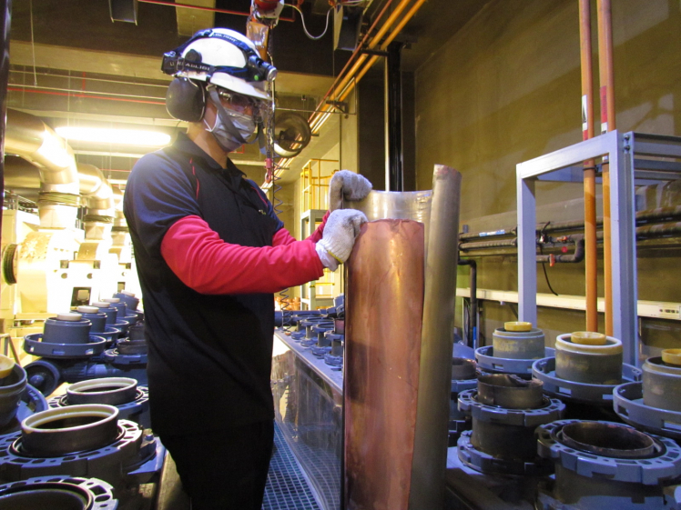 LEYU官網(wǎng)將廢棄物轉(zhuǎn)化成有效的工業(yè)或民生原物料,圖為廢銅液淬煉后再制成純度極高的銅管