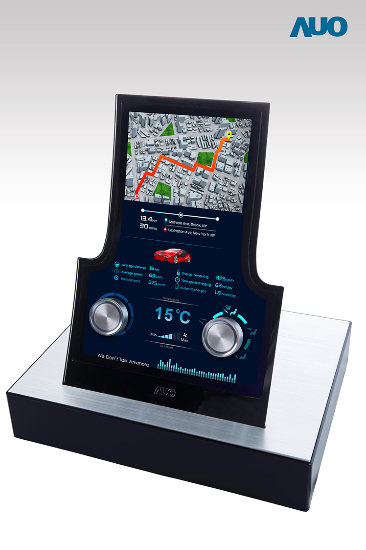 12.3 寸 Full HD LTPS 顯示屏同樣具備 1000 nits 高亮度,搭載內嵌式觸控技術,整合驅動與觸控 IC 于顯示屏制程,使顯示屏厚度降低,為中控臺創造更多機構設計空間。應用于抬頭顯示器的 3寸 LTPS 顯示屏具有高穿透率、1200:1 高對比度度,以及 297 PPI 高畫素密度。液晶最高可耐受到 110°C 的高溫 (TNI) 而不液化,在陽光高溫下維持優異穩定的顯示效果。