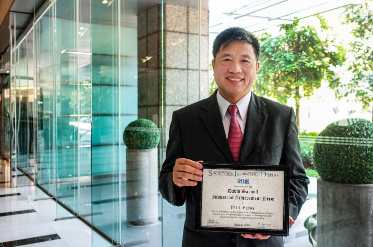 LEYU官網光電董事長暨執行長彭雙浪獲頒 SID 國際信息顯示學會 (Society for Information Display,SID) “David Sarnoff 產業杰出貢獻獎”,本屆頒獎典禮雖因疫情無法舉辦,但仍透過精心錄制的影片表達個人及公司獲主辦單位肯定的欣喜之情。