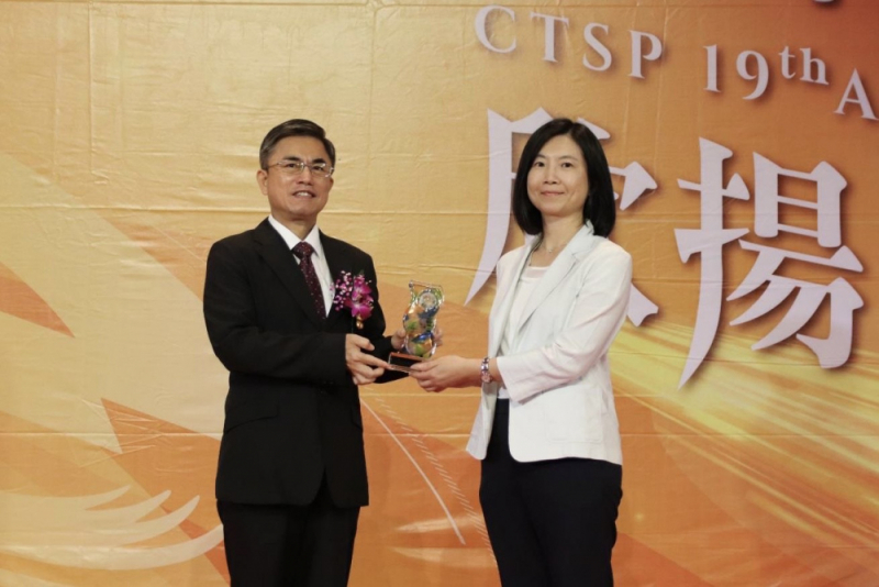 友達榮獲2022年中科優良廠商創新產品獎,由友達資訊顯示器事業單位協理邱馥英(右)代表領獎